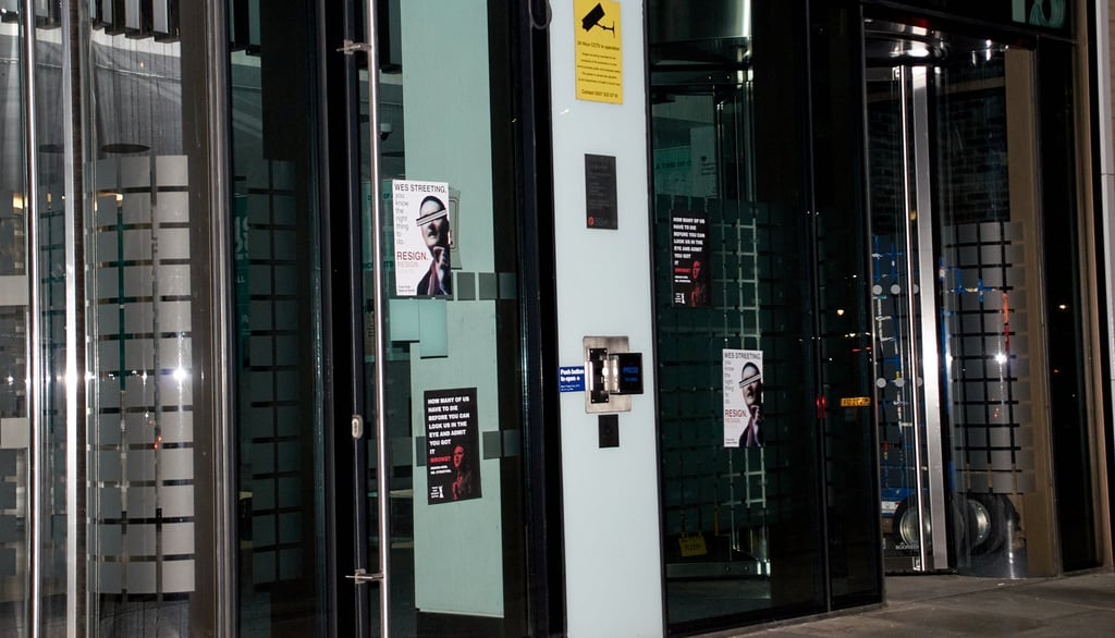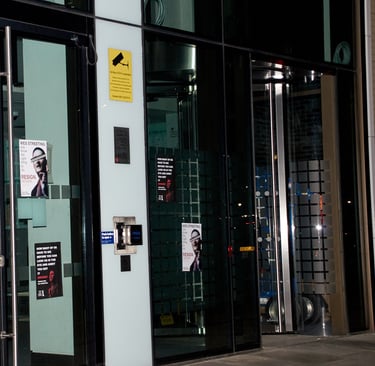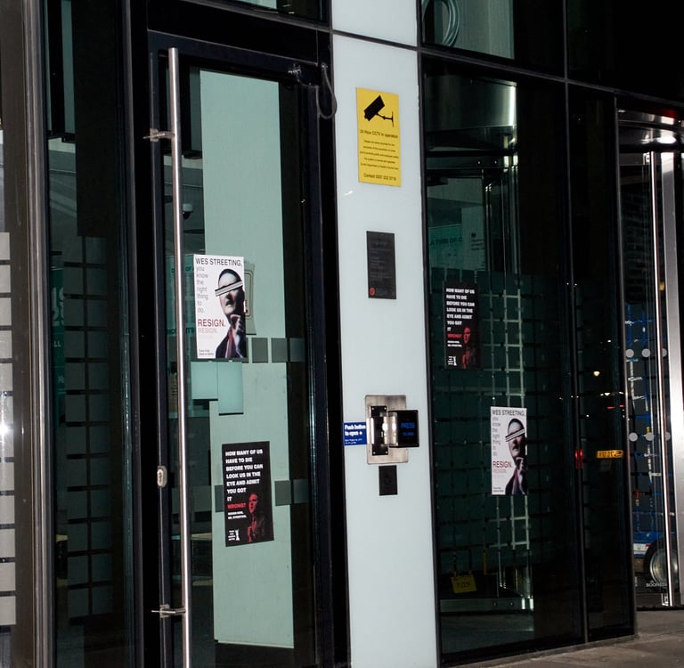 LONDON, 5 OCT 2025, 7:45pm— 6 young activists from Trans Kids Deserve Better (TKDB) plastered the front of the Department of Health and Social Care's London offices with A3 posters, calling for the resignation of Wes Streeting. This is a step up from their year-long campaign, "Kids Are Dying, Wes", where they left paper coffins outside of his office every day.